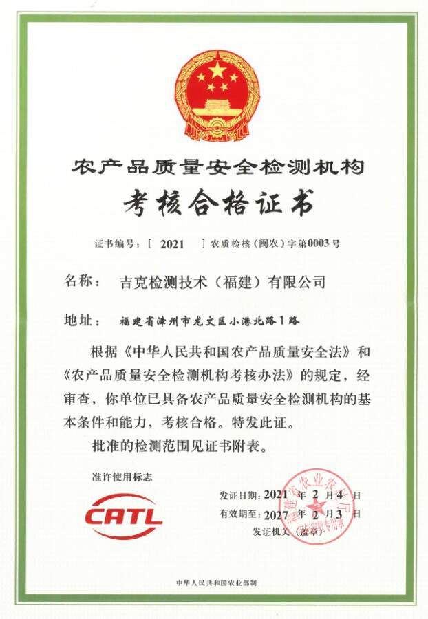 吉克檢測技術(shù)(福建)有限公司,位于福建省漳州市龍文區(qū)小港北路1號,于2019年8月注冊成立,是一家獨(dú)立的第三方檢測公司。公司已經(jīng)通過檢驗(yàn)檢測機(jī)構(gòu)計(jì)量認(rèn)證(CMA)、農(nóng)產(chǎn)品質(zhì)量安全檢測機(jī)構(gòu)資質(zhì)認(rèn)證(CATL),獲得中國合格評定國家認(rèn)可委員會(huì)(CNAS)認(rèn)可。公司本著“嚴(yán)謹(jǐn)、規(guī)范、高效、協(xié)作”的原則和對客戶及社會(huì)高度負(fù)責(zé)的精神,充分利用本公司優(yōu)質(zhì)的檢測環(huán)境、先進(jìn)的檢測設(shè)備和專業(yè)的技術(shù)人員,第一時(shí)間為客戶提供科學(xué)、公正、準(zhǔn)確的檢驗(yàn)檢測報(bào)告。 公司實(shí)驗(yàn)室面積1100多平方米,儀器設(shè)備兩百多臺(tái)(套),固定資產(chǎn)一千多萬元,在職員工31人,技術(shù)人員中的中高級職稱及同等能力人數(shù)占60%以上。我們的服...